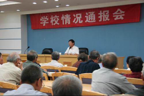 谭天伟校长强调,离退休老同志是学校发展的功臣,学校一直高度重视老同志工作,非常关心老同志的健康、生活状况。谭天伟校长从三个方面向离退休老同志代表汇报了学校情况。首先,谭校长对2012年学校工作进行了回顾。2012年,学校完成985工程和211工程三期的验收工作,开展2011计划(高等学校创新能力提升计划)筹备工作,并成立“资源化工绿色过程与产品协同创新中心”;全校科技工作继续稳定发展,成立“科研项目培育办公室”进一步完善科技管理制度和政策;加强教师培训,加快教师队伍建设,实施人才强校战略大力引进海内外高层次人才;全面推进教育改革,提高人才培养质量,以提高研究生创新能力为核心全面提高研究生教育质量,研究生、本科生招生质量显著提高;新校区征地进展顺利,前期规划工作基本完成。其次,谭校长通报了学校今后的工作思路。谭校长指出,学校要继续扩大教师规模,改革评价体系;全面提升创新质量,协同创新,提高学校的核心竞争力;大力加强教学和科研相结合,将科研优势转为人才培养优势;不断推进教授治学,建立大学制度。最后,学校将积极努力,提高老同志相关待遇。他指出,学校在加快发展建设的同时,一定会努力创造条件积极为在职职工和离退休职工改善生活谋取利益。
