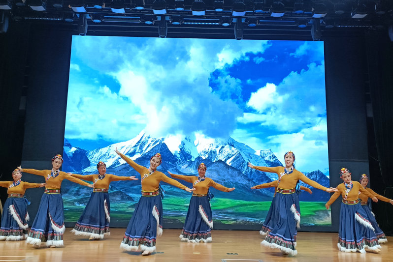 随后,男声独唱《在那桃花盛开的地方》、交谊舞《我和我的祖国》、诗朗诵《我骄傲我是中国人》、女声独唱《重整河山待后生》、古典舞《喜上枝头》、柔力球表演《画你》、乐器小合奏《在北京的金山上》《冰糖葫芦》、藏族舞《藏风美少年》、模特表演《国风礼赞》、男女声小合唱《今夜无眠》、健身筷子舞《我祝祖国三杯酒》轮番上演。老同志们以嘹亮歌声抒发胸臆,用欢快舞步传递热忱,将一腔赤诚化作对伟大祖国最真挚的祝福。台下掌声此起彼伏,现场洋溢着热烈欢的氛围。