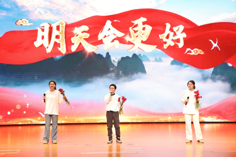 大学生们同样登台献艺,不仅带来了小合唱《明天会更好》,更以手持红色的康乃馨,赠予现场的老前辈,用歌声与鲜花传递晚辈的敬意与祝福。