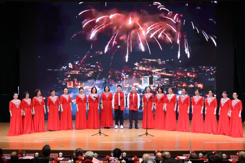 团拜会现场,离退休社团的100余位演员献上自编自演的精彩节目,开场舞《欢乐中国年》一亮相,便点燃了现场观众的热情。