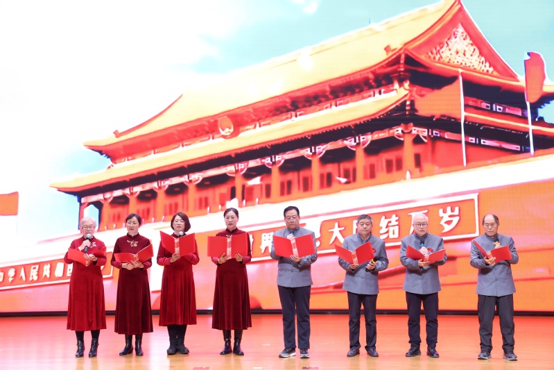 最后,校领导与全体演员合影留念,团拜会在温馨祥和的氛围中圆满落下帷幕。